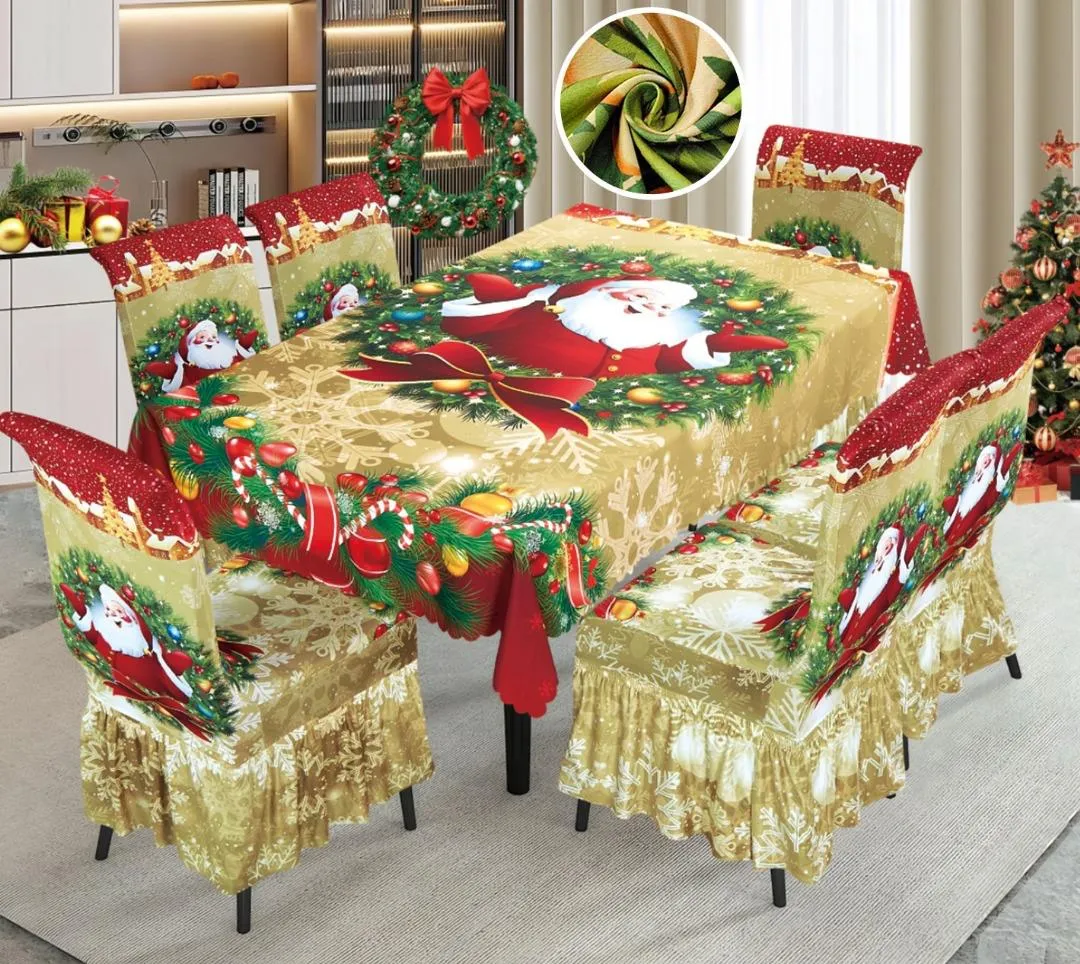 Este elegante set de 7 piezas incluye un mantel rectangular de 140 x 220 cm y 6 fundas de silla a juego, decorados con motivos tradicionales que llenan tu hogar de calidez, color y alegría. Ideal para cenas familiares, reuniones especiales o simplemente para darle un toque festivo a tu día a día.